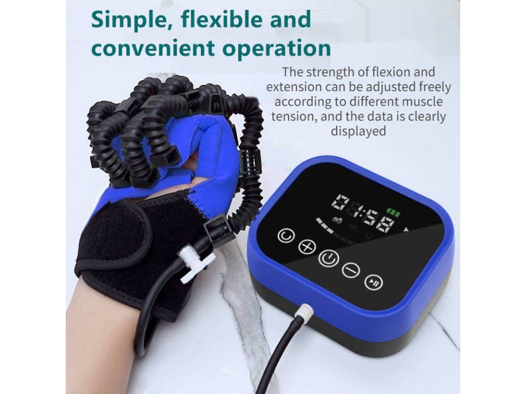 - Přizpůsobitelná rehabilitace: Nastavení intenzity a síly pro každý prst zvlášť.